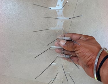 igh-grade stainless-steel spikes designed to stop pigeons from sitting on ledges, pipes, AC units, and rails.